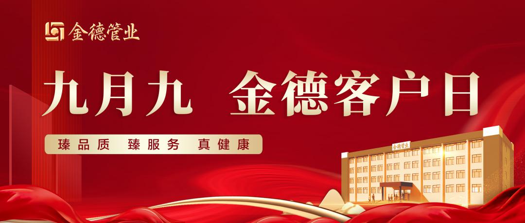 2023-10-02 金德管業(yè)集團(tuán) 2984金德管業(yè)集團(tuán)首屆“九月九客戶日”將于2023年9月9日與廣大客戶相約!本次活動,我們將帶來豐盛的福利回饋,提供高品質(zhì)客戶福利,搭建開放的互動橋梁,持續(xù)擦亮金德管業(yè)“瑧品質(zhì) 臻服務(wù) 真健康”品牌形象。