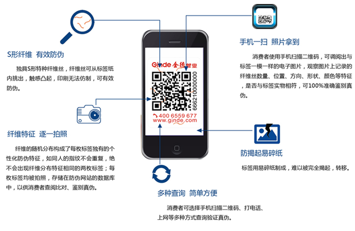 智能手機查詢:每一根金德管(管件)上都貼有獨一無二的二維碼標簽,通過智能手機軟件(如微信)掃描二維碼可以進行防偽查詢;
